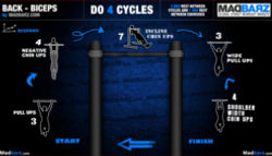 - podciągnięcia (mięsień najszerszy grzbietu, obły, czworoboczny i równoległoboczny, biceps, mięsień przedramion i dłoni)